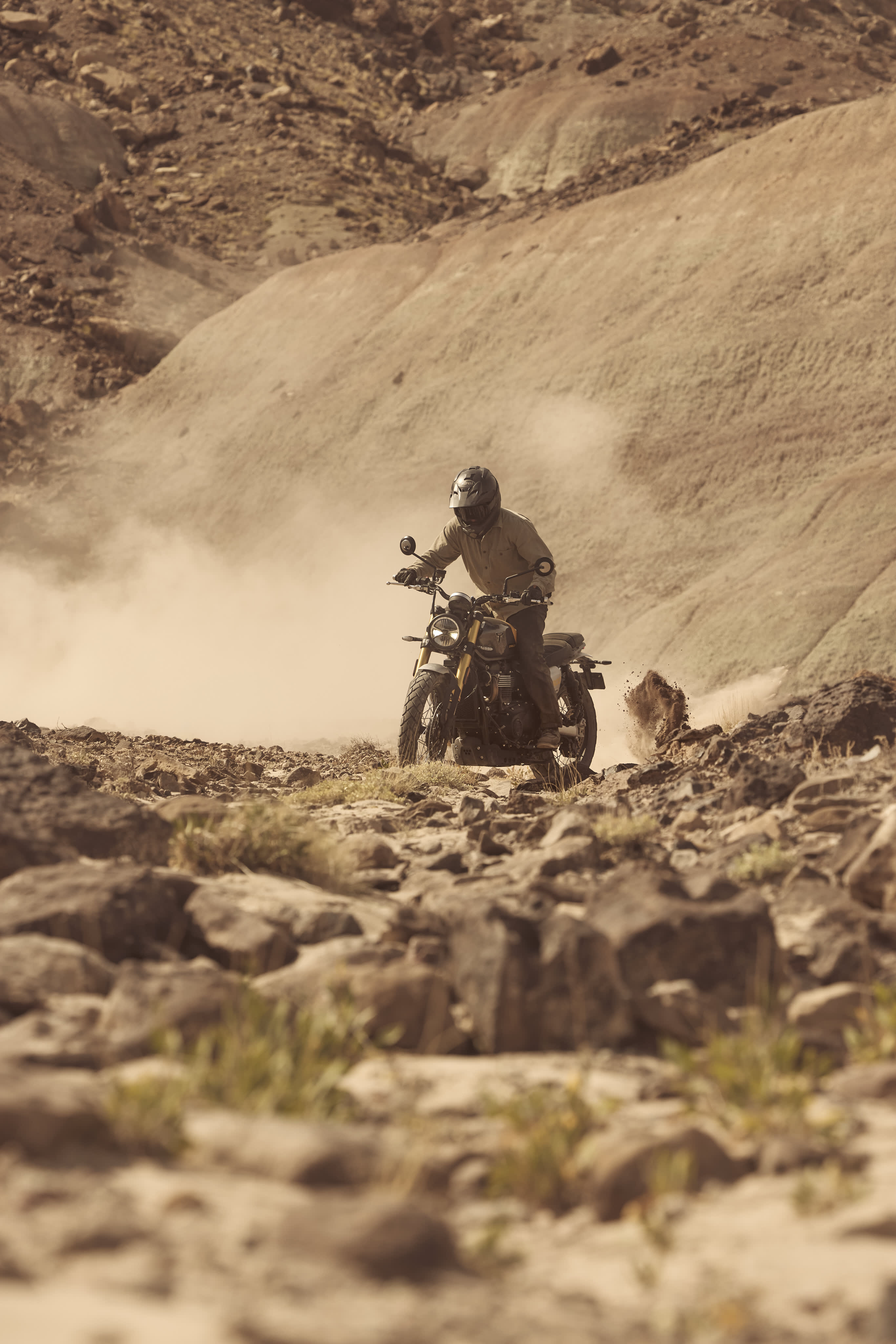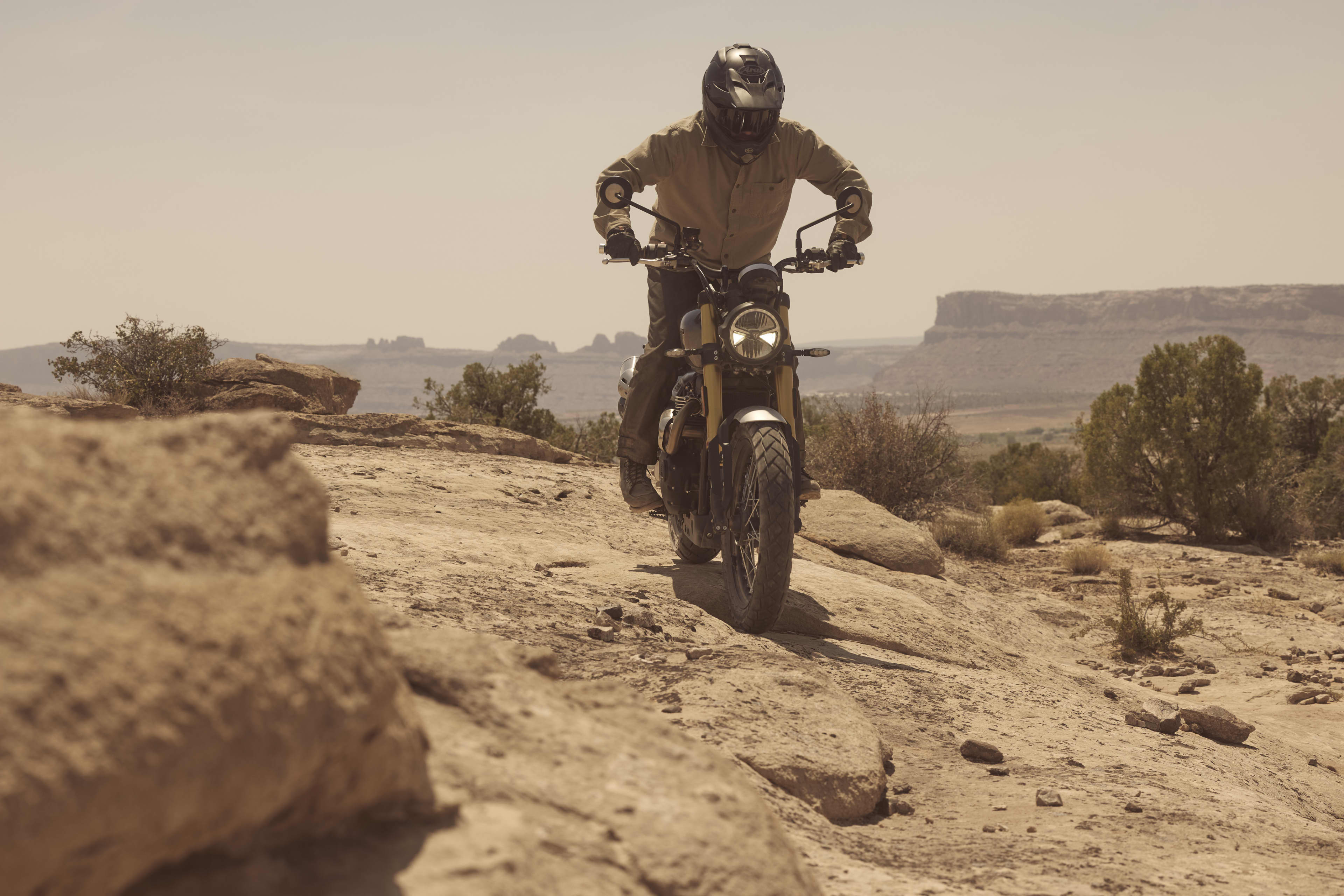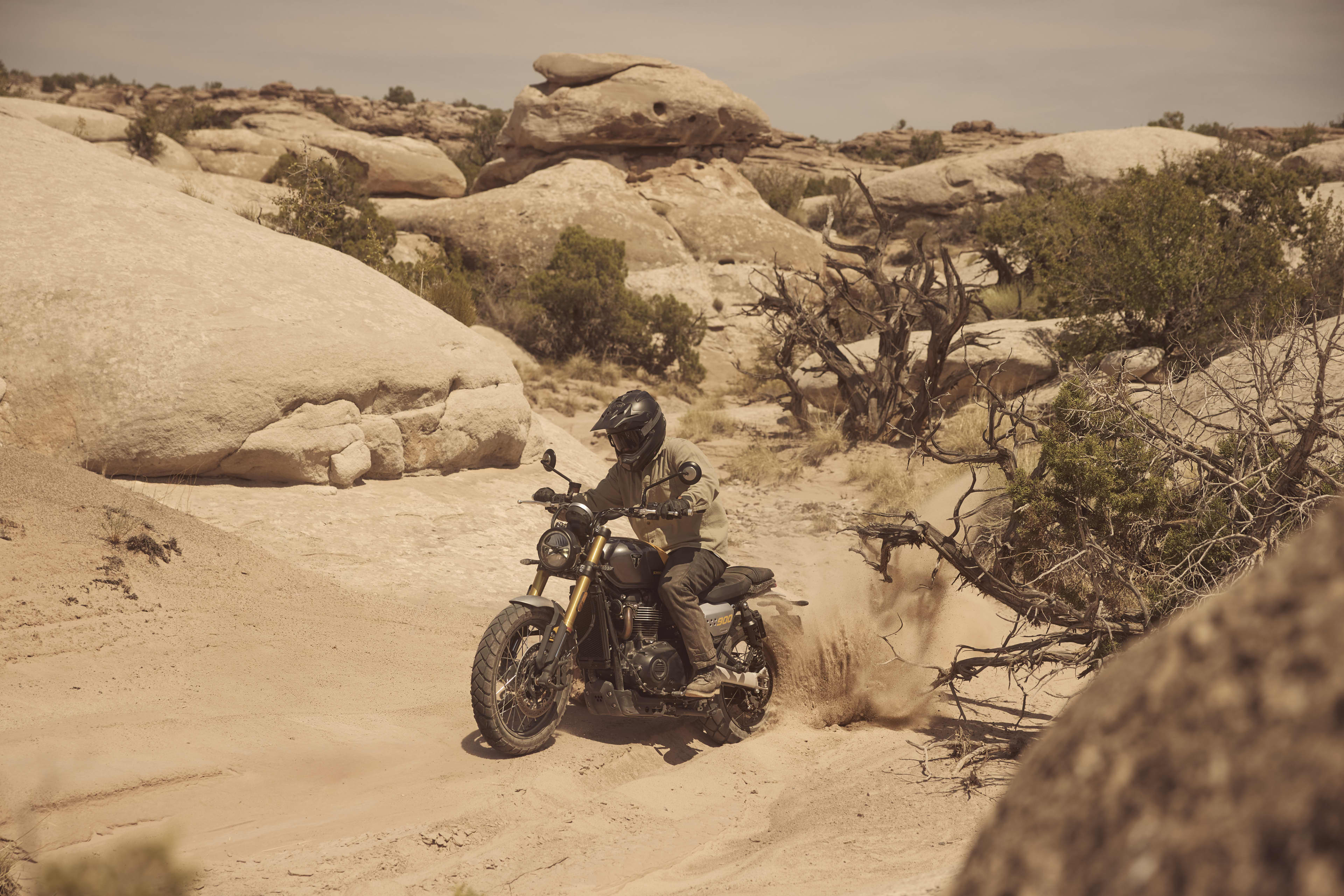 Pri Triumph Scrambler 900 forma nasleduje funkciu a pre jazdu na tomto motocykli je charakteristická jazdecká pozícia s istou vzpriamenou pozíciou, odpružením s dlhým zdvihom a väčším predným kolesom, ktoré podčiarkujú zámer použiť motocykel na všetkých typoch ciest.