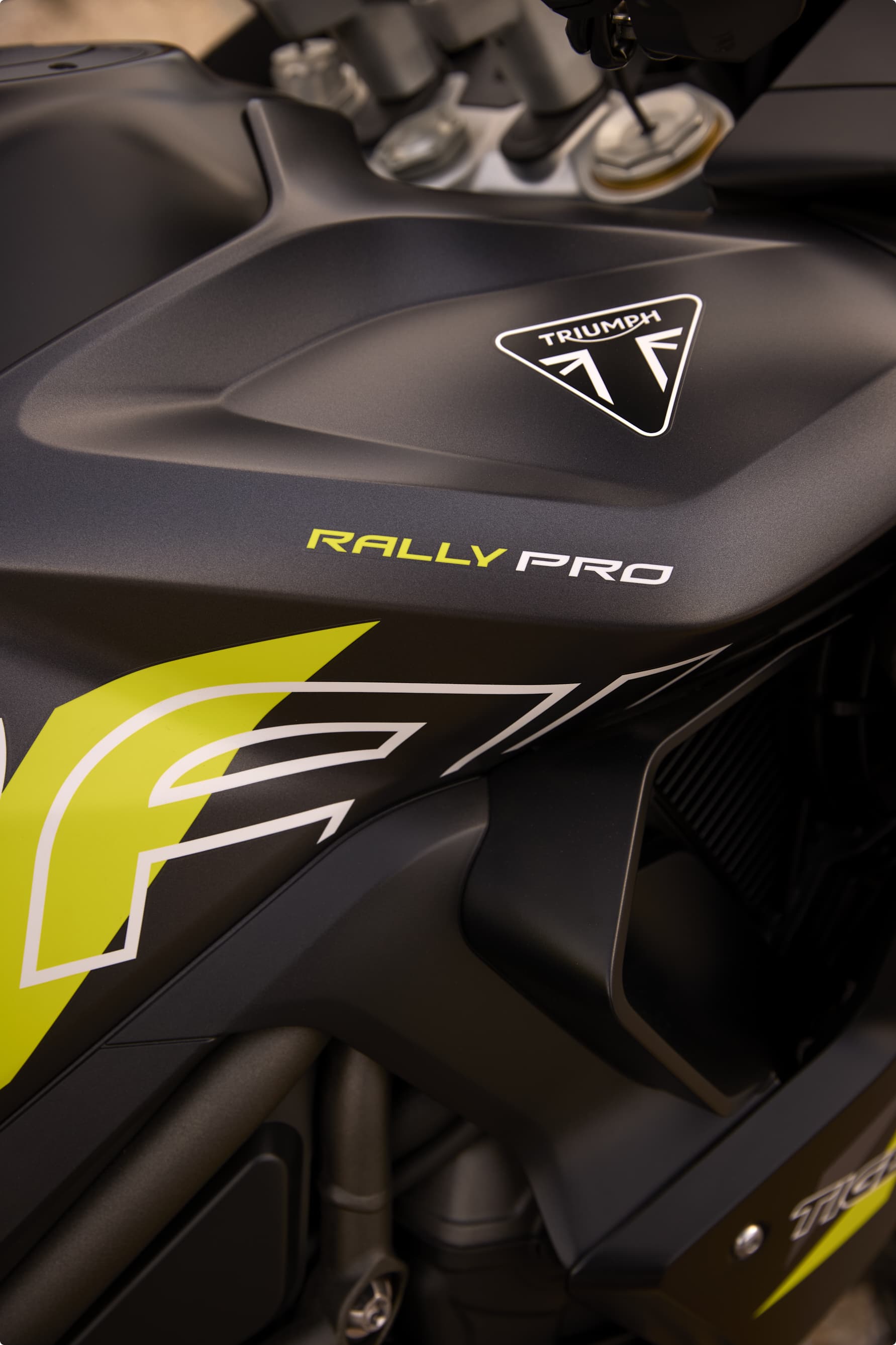 Tiger 1200 Desert Edition je k dispozícii v prevedení Satin Granite alebo Crystal White s výraznými detailmi a grafikou Desert Edition. Najdynamickejšie prevedenie modelu Tiger 1200.